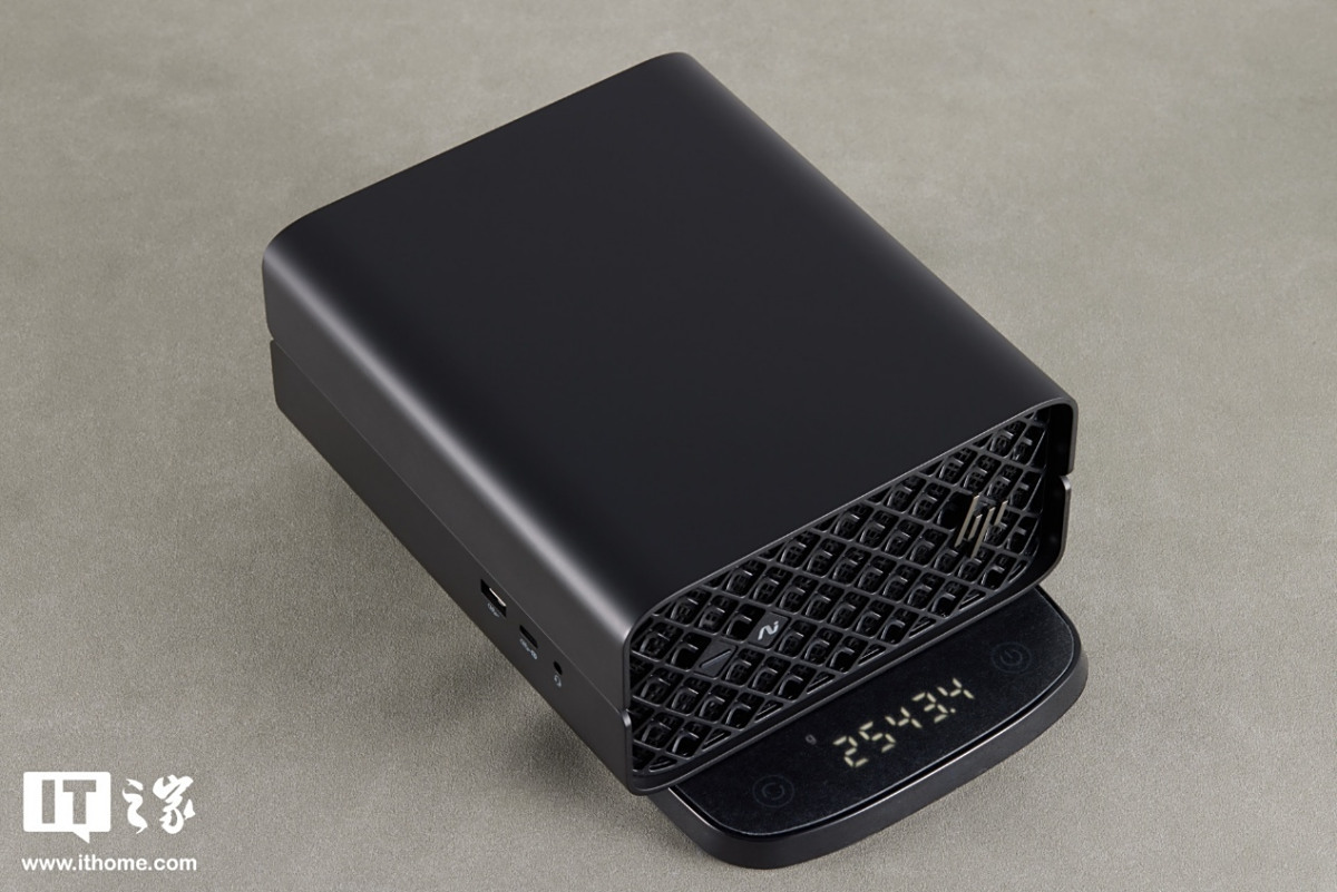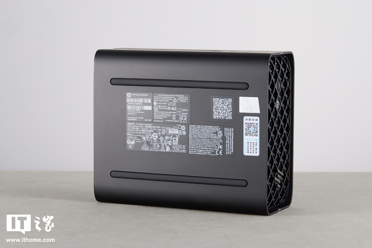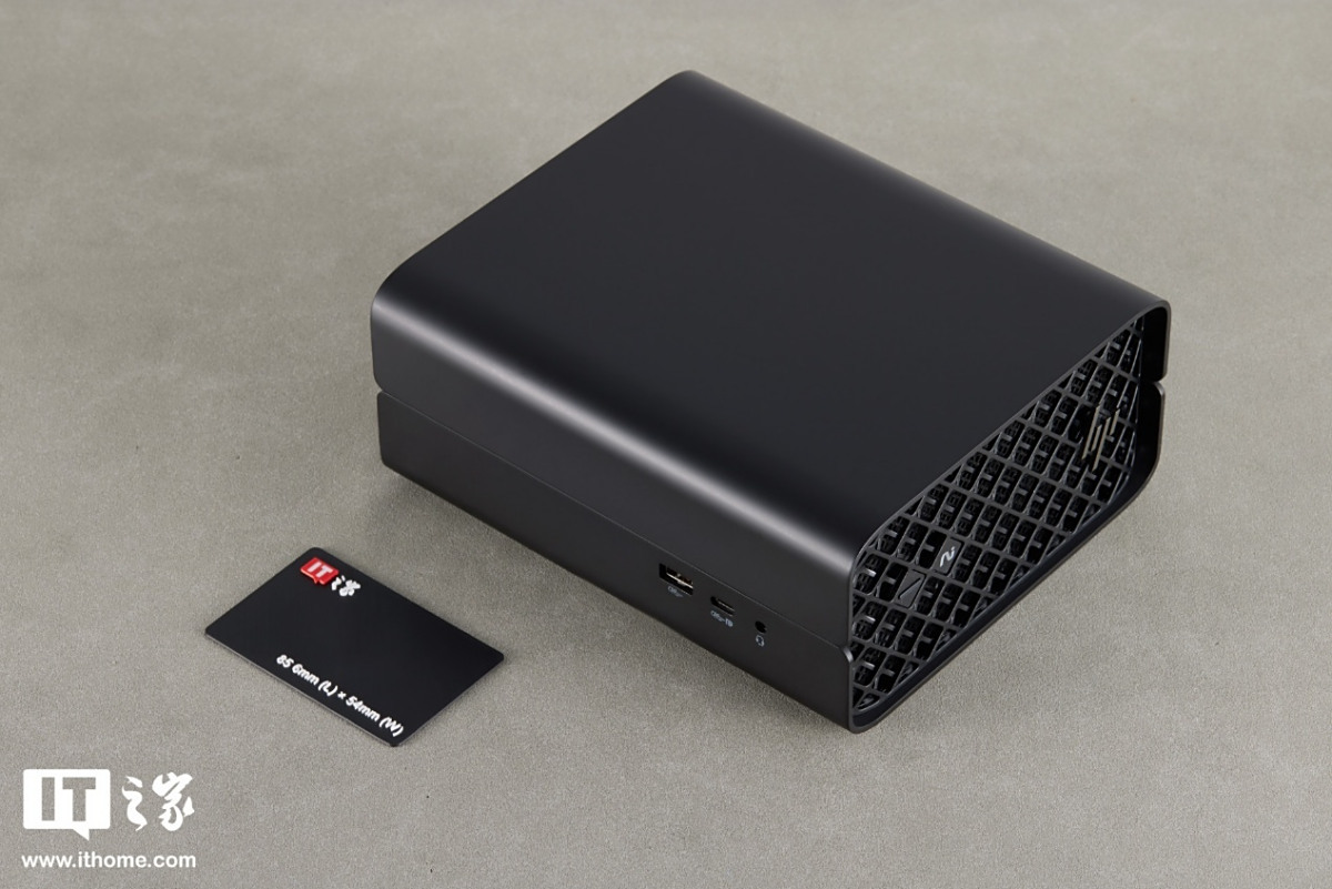 不同于一般工作站四四方方的铁盒子造型,惠普 Z2 Mini G1a 迷你 AI 工作站的外壳采用了拼接设计,2 个 U 型外壳包裹住上下左右,大弧度的倒角弯折让机身看起来非常圆润。做工细致,品质感满满。