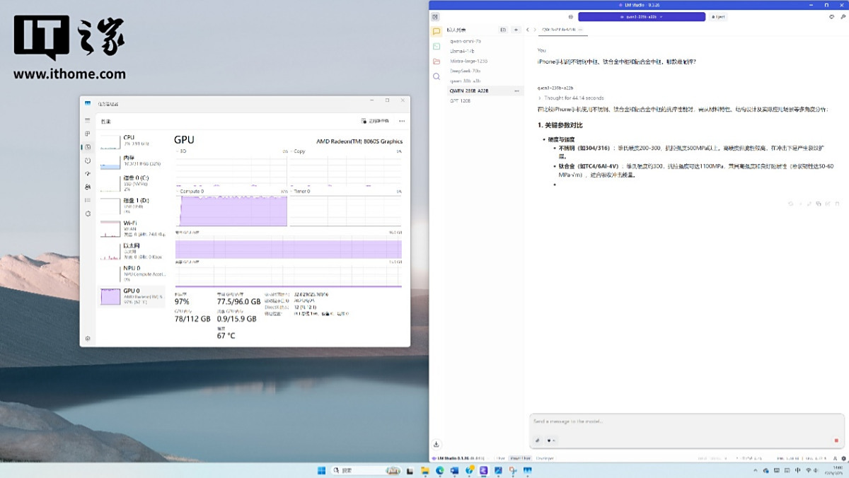 那么这里我们足够得出结论,在 AMD 锐龙 AI Max+ PRO 395 处理器 AI 算力的加持下,即使部署和运行 Qwen3-235B 这样的超大混合专家(MoE)参数模型,也可以获得非常流畅、高效的使用体验,大模型思考问题的等待时间也不长。