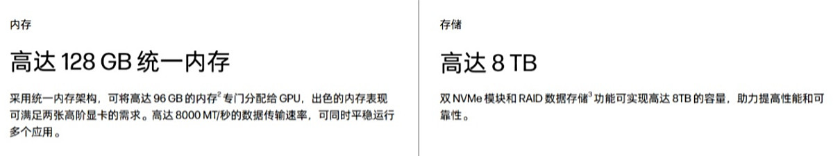 硬盘方面,出厂标配一根 2TB SSD,内置双 M.2 插槽且支持容量定制服务,最高支持 8TB 容量的 RAID 阵列,能够很好满足数据存储和容量扩展等需求。
