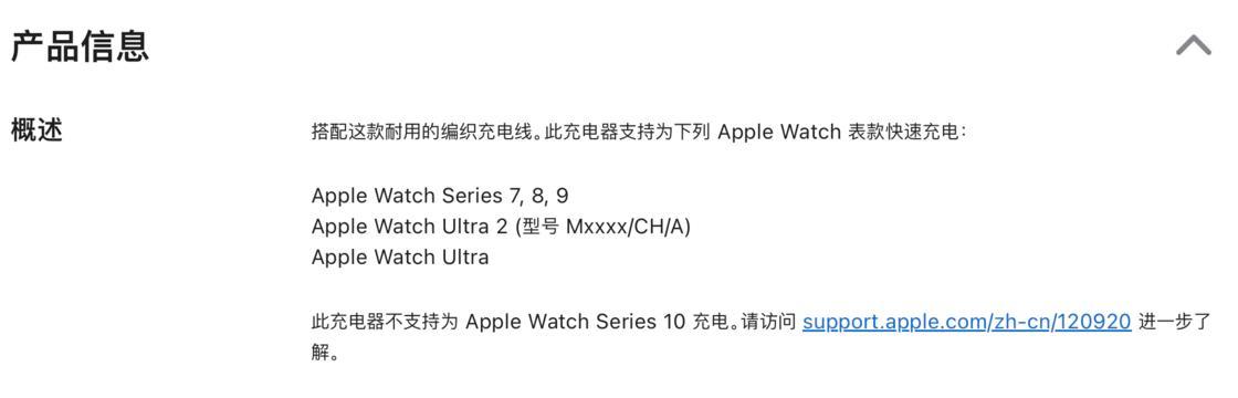 首先,在中国卖的 Apple Watch Series 10、Apple Watch Ultra 2 和 Apple Watch SE (第 2 代)部分型号均不支持无线快速充电。你哪怕是用老款手表附赠的 Apple Watch 磁力快速充电器,也是没办法给这些手表充电的。
