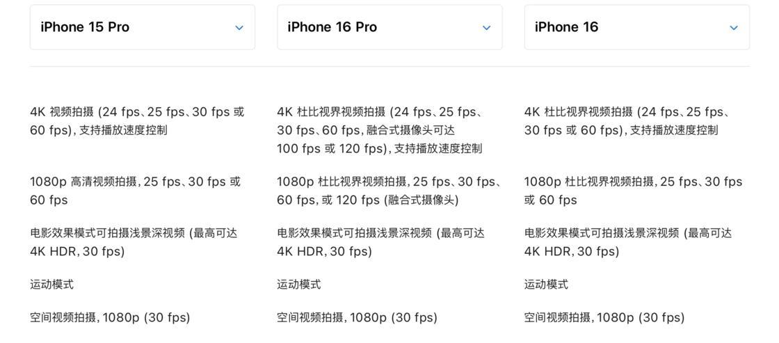 今年 iPhone 16 系列的后置相机均支持拍摄空间照片,看起来 Apple 开始大力推行空间视频拍摄了,不过分辨率仍然为 1080P (30 fps)。