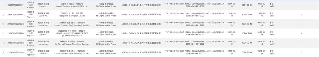 iPhone 16 系列标注为 5-15VDC,3A 最大