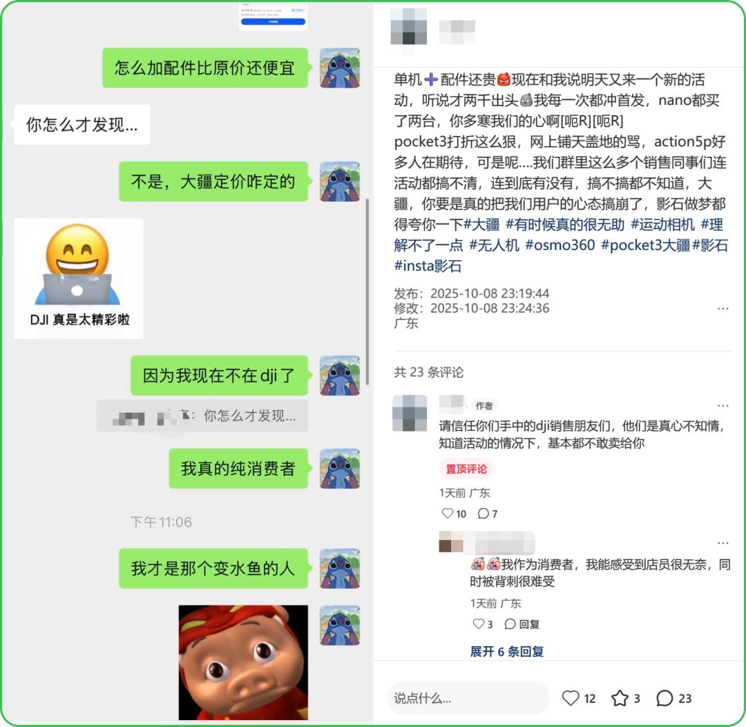 大疆的线下体系,对消费者来说是一种信息差。他们中的部分人还愿意继续购买大疆产品,但也明确表示以后不会再考虑线下买电子产品,因为得不到相应的保障。