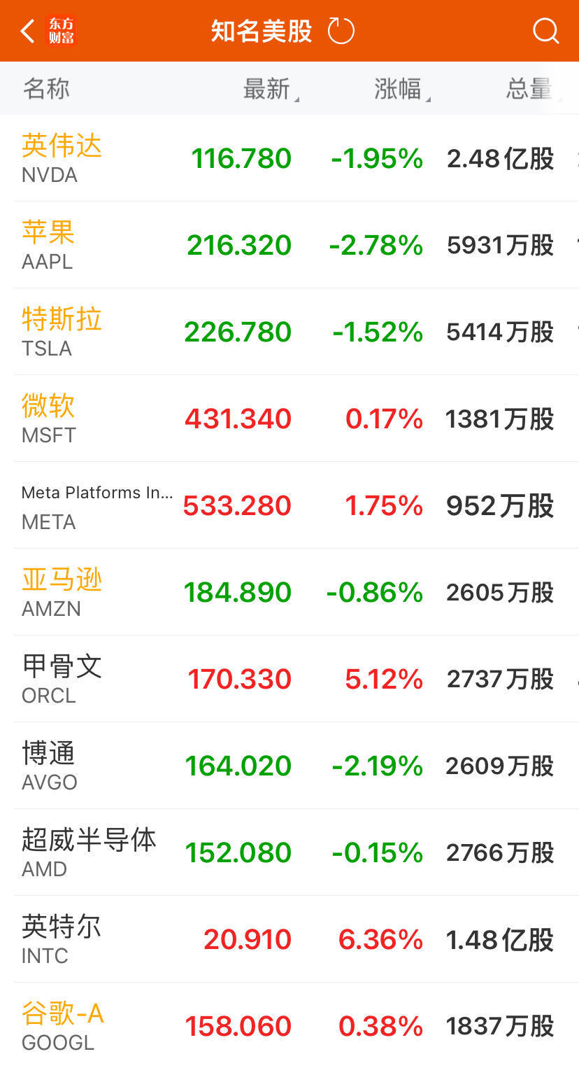 大型科技股涨跌不一,英特尔涨超6%,Meta涨超1%,微软、谷歌小幅上涨,英伟达、特斯拉跌超1%,亚马逊、奈飞小幅下跌。