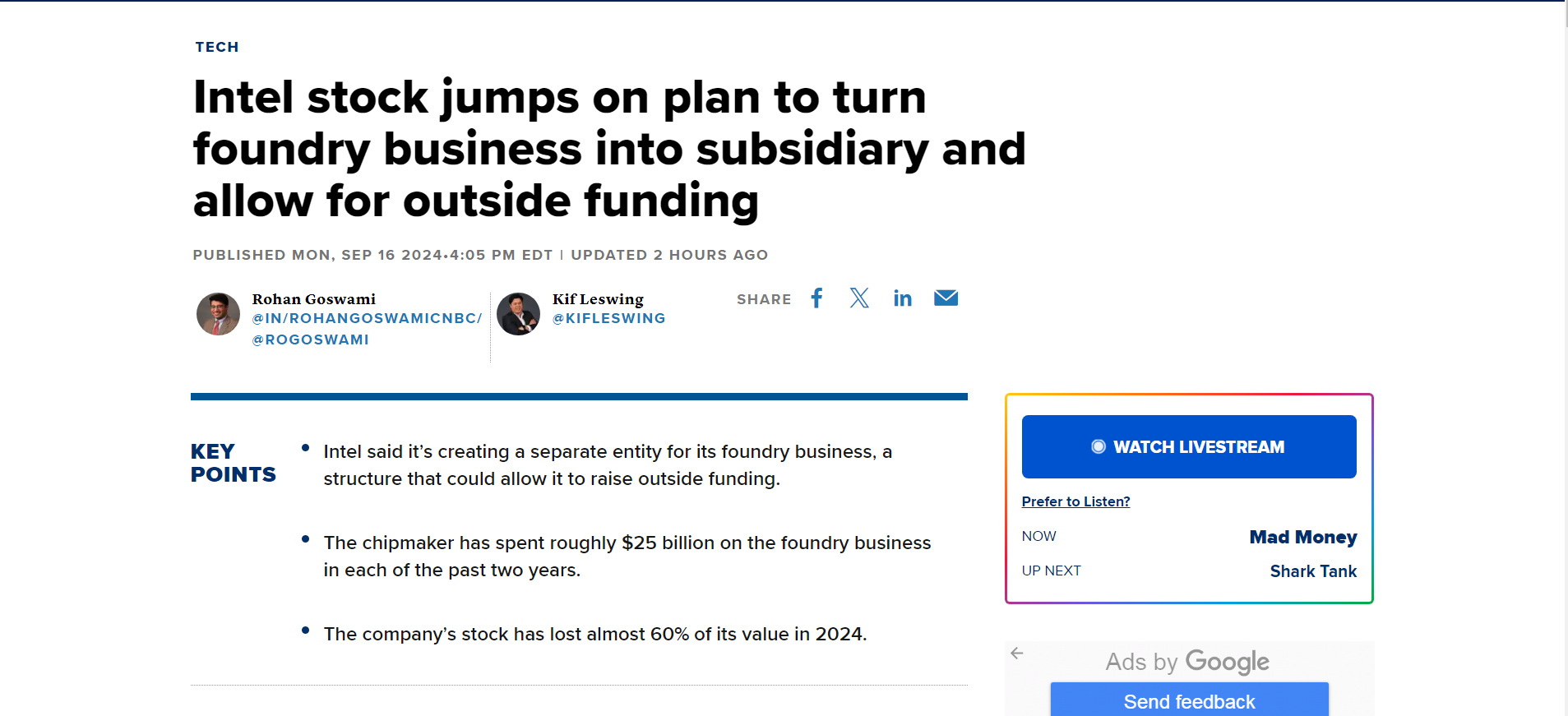 据知情人士透露,除了考虑外部融资外,英特尔还在权衡是否将晶圆代工业务分拆,可能成立一家单独的上市公司。通过成立一个独立的“运营董事会”和更清晰的公司架构,相较于把一个完全一体化的部门变成一家独立公司而言,分拆的操作机制变得简单许多。