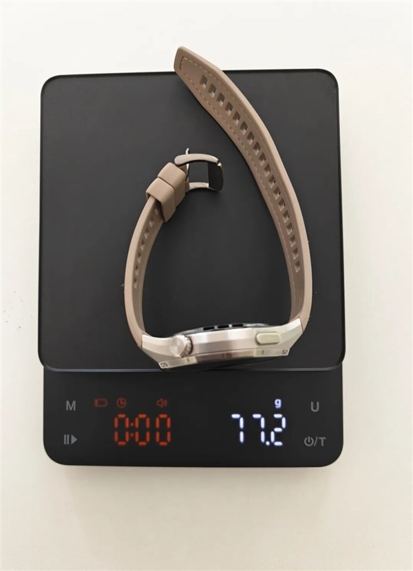 不过这位同事也给我反馈了一点缺点,就是这个表骑车的时候感觉稍微有点重了。我拿回来称了下,算上表带重量能来到 77.2g。