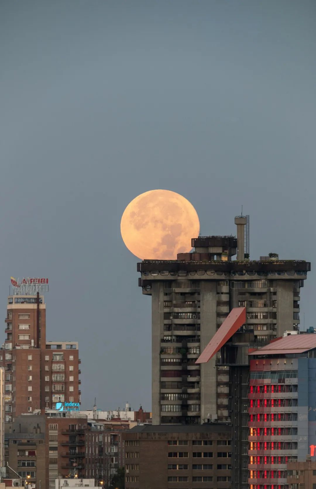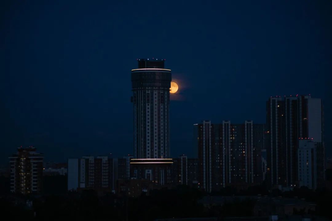 城市里拍摄月景,可以试试与建筑进行搭配。而想要照片更好看,则需要月亮与建筑形成特殊的位置关系,如月亮更好位于建筑顶部: