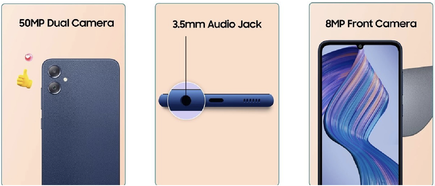 据介绍,这款手机背面采用素皮设计,仅提供暮光蓝一种配色,其内置 50MP+2MP 双摄模组,正面使用一块 6.7 英寸 LCD 水滴屏,配备 8MP 自拍摄像头。