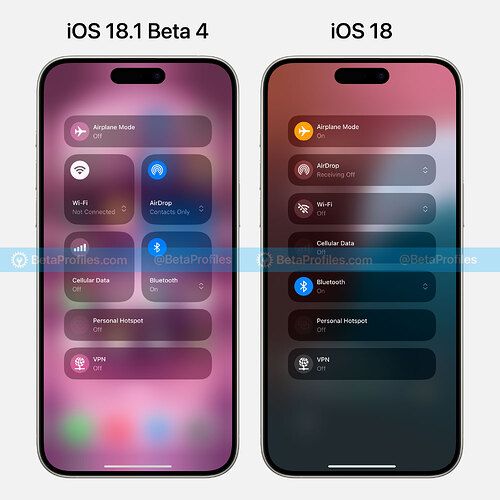 iOS 18.1 Beta 4 中的控制中心 Connectivity 部分采用了更新设计。