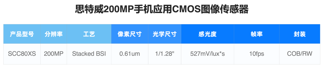 基于思特威 SmartClarity-SL Pro 技术平台,SCC80XS 采用 22nm Stack 工艺制程,1/1.28 英寸 0.61μm 小像素尺寸,搭载思特威 PixGain HDR、SFCPixel-SL 及 AllPix ADAF 等多项技术,支持高帧率高动态范围视频录制,可适用于高端旗舰手机主摄及辅摄等多类型摄像头。