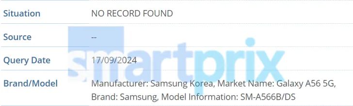 该机目前已经现身 GSMA IMEI 数据库,设备型号为“SM-A566B / DS”。而前代 Galaxy A55 手机的型号为“SM-A556B / DS”。