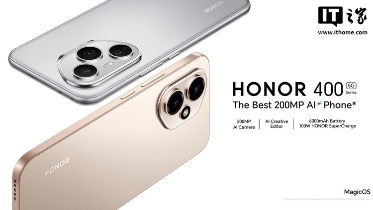 作为参考,荣耀 X00 系列目前最新的机型是 400 系列,采用 6.55 英寸 2736×1264 OLED 屏,支持 120Hz 刷新率,搭载 2 亿超清写真人像主摄,实现档位唯一 6X 超清长焦人像,发布时标价 2499 元起。