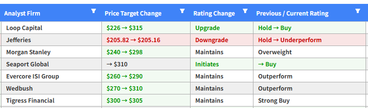 Baruah将苹果目标价上调至华尔街最高水平——315美元,意味着较上周五收盘价仍有约25%的上涨空间。
