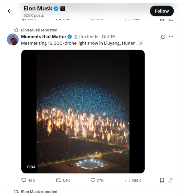 表演相当成功,引起了国内外网友的关注,近日,世界首富埃隆·马斯克也在推特上转发了相关视频。