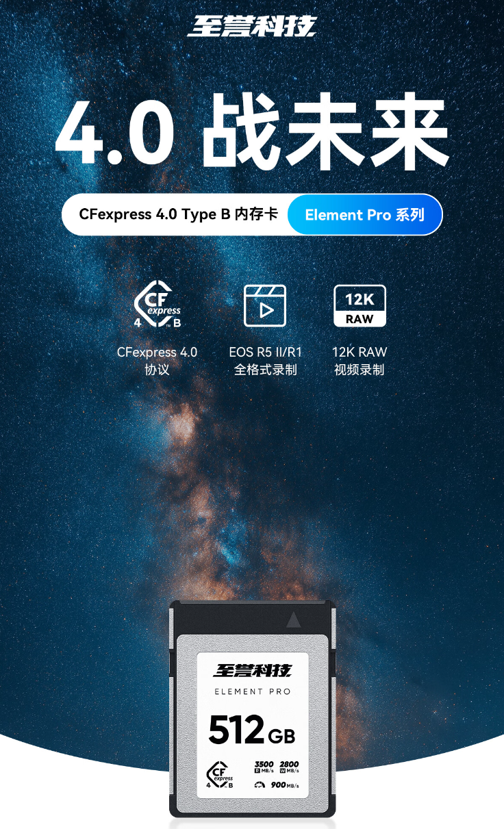 IT之家 9 月 18 日消息,至誉科技 Element Pro CFexpress 4.0 Type B 存储卡现已开售,该系列存储卡提供四种容量,此次开售的是 512GB、1TB 和 2TB 三种存储规格,首发 3999 元起。