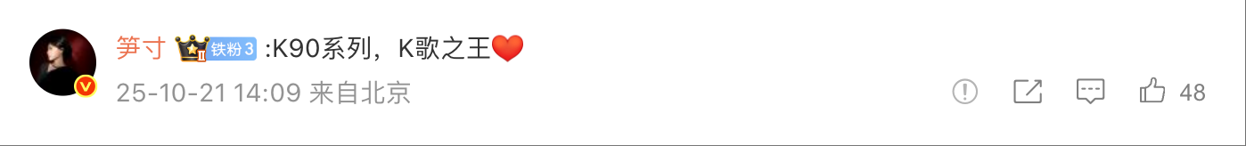 对此,REDMI产品经理“笋寸”评论称:“K90系列,K歌之王。”