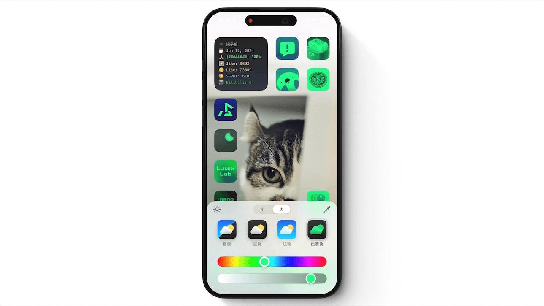 而着色逻辑则是先将图标去色为黑白灰,再赋予新的颜色,这个模式适合某些高度定制化的场景,比如家中猫的主题界面。