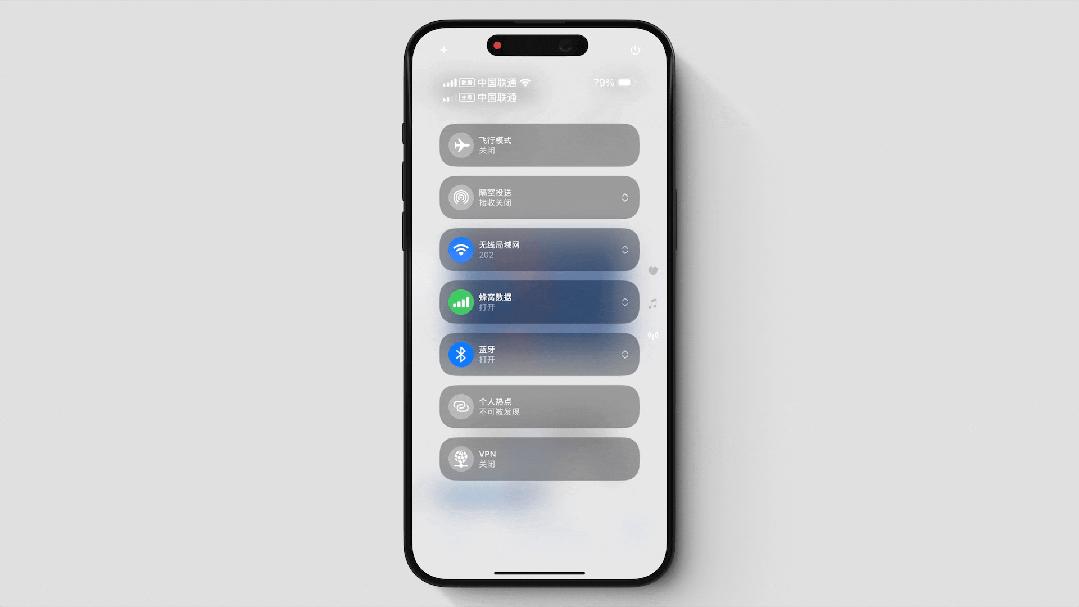 数据页的隔空投送、Wi-Fi、蜂窝数据、蓝牙栏新增右侧选项,轻点进入菜单。此前的版本中需要长按,也可以通过这里快速进入到设置里的相关功能页面,双卡用户再切换网络的时候也不用抓狂了。