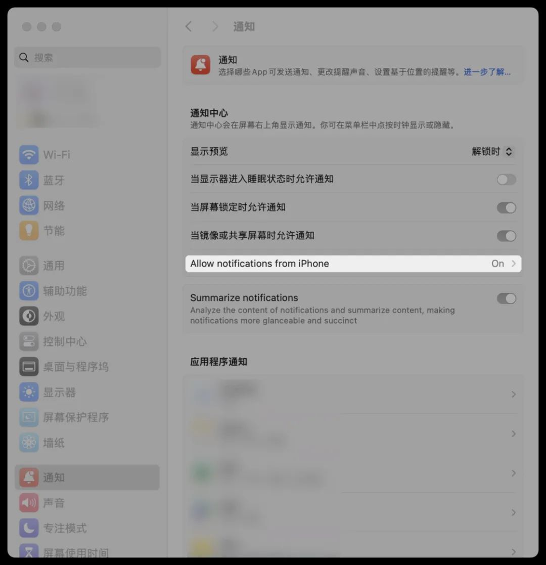 在使用 iPhone 镜像功能的时候,Mac 也会同步 iPhone 上的通知。会在通知里应用程序的图标下方显示一个手机的样式。这些通知载断开 iPhone 镜像的以后仍会保留,点击这些通知则会重新连接到 iPhone 镜像。