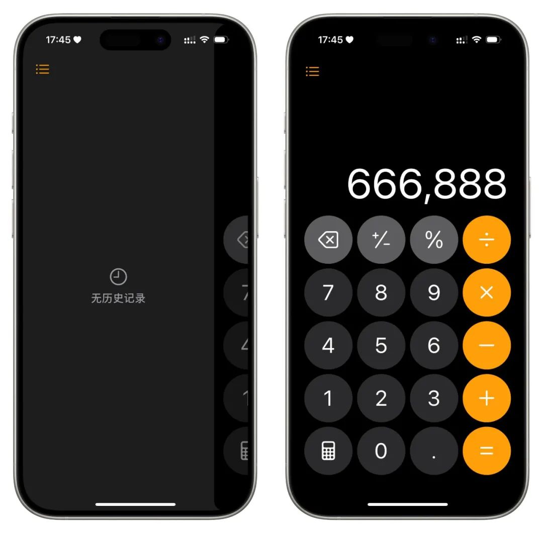 另外,由于计算器的左划手势让渡给了结果历史记录,因此 Apple 设备的计算器终于迎来了自诞生以来的「史诗级更新」:删除键。