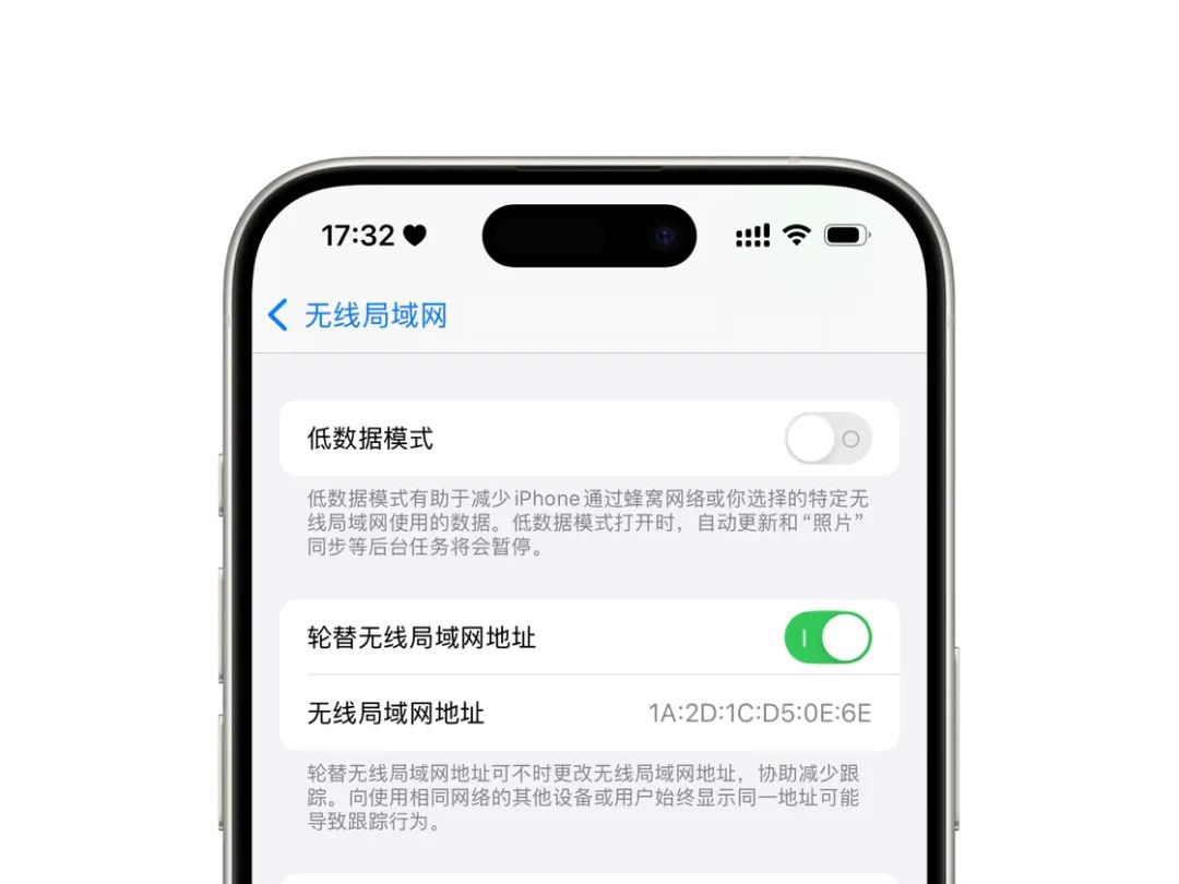 更新到 iOS 18 之后,Apple 将 Wi-Fi 详情页面下的「私有无线局域网地址」功能更改为了「轮替无线局域网地址」。开启后,设备的 Wi-Fi 地址将「不时」地进行更改,减少网络跟踪,保护用户隐私。