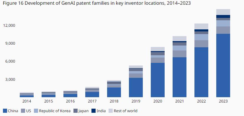 根据联合国世界知识产权组织的报告显示,中国在GenAI专利竞赛中成绩遥遥领先。