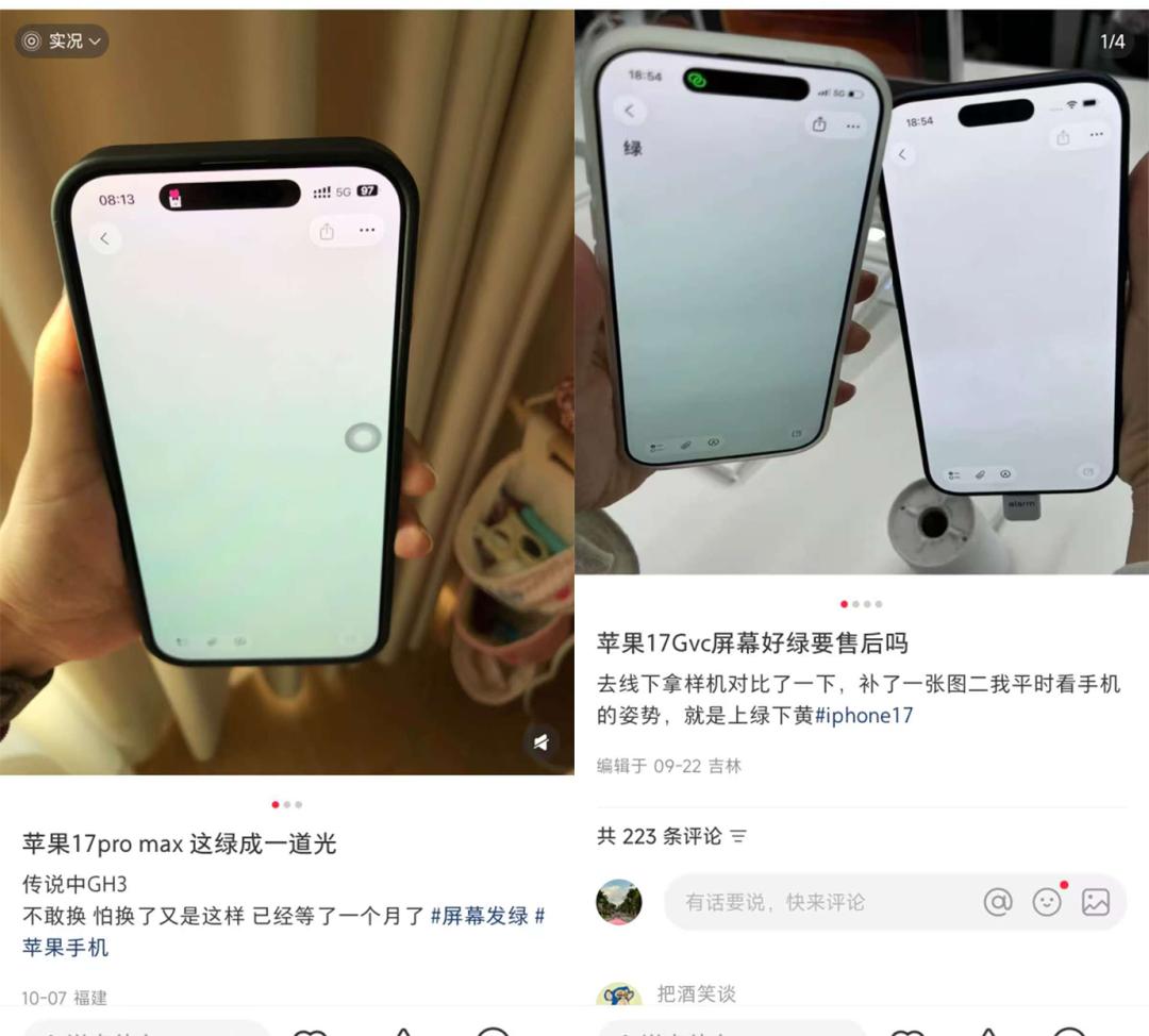以今年 iPhone 17 Pro Max所用的 LG GVC 面板为例,在同一个批次中,就有用户拿到了观感通透、色彩纯正的“完美屏”,甚至说这才是iPhone 17 Pro Max这代的“天花板”,同时也有用户报告了虽然抽到了三星屏,但出现了轻微的黄绿偏色或“抹布感”。