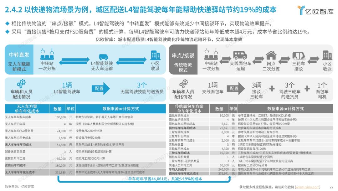 而采用“低硬件价格+软件付费订阅”的模式计算,每辆无人物流车每年可助力快递驿站降低成本超4万元,成本节省比例达19%——这还是以单车购车成本为10万元的标准计算得到的数据。