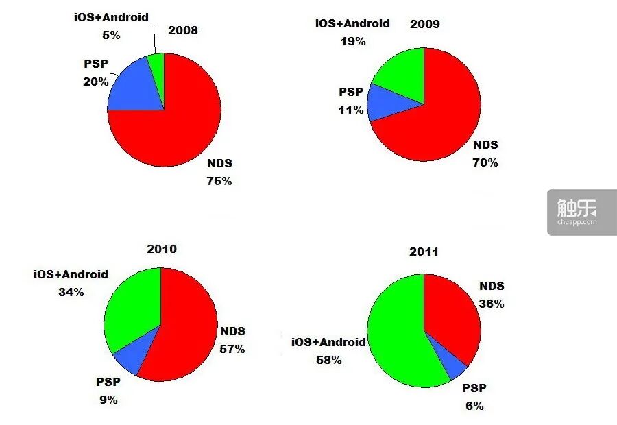 以平台比例计算,PSP游戏占2011年日本游戏销量的27%,3DS和NDS均为14%,这是PSP在日本唯一一次占比最高,也是索尼在日本最后一次占比最高。然而,PSP在2011年的日本游戏销量比2010年少了250万,硬件销量则少了100万。换句话说,PSP已经进入衰退周期,仅仅是抓住了NDS和3DS的换挡期实现了一次占比最高。此时PSP在日本进入“夕阳无限好,只是近黄昏”的状态。