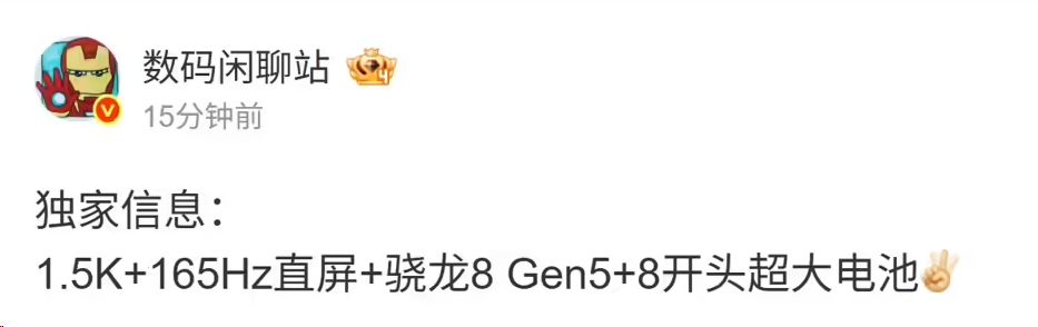 没啥意外啊,芯片会升级为骁龙8 Gen5,相比骁龙8s Gen4提升还是蛮大的。