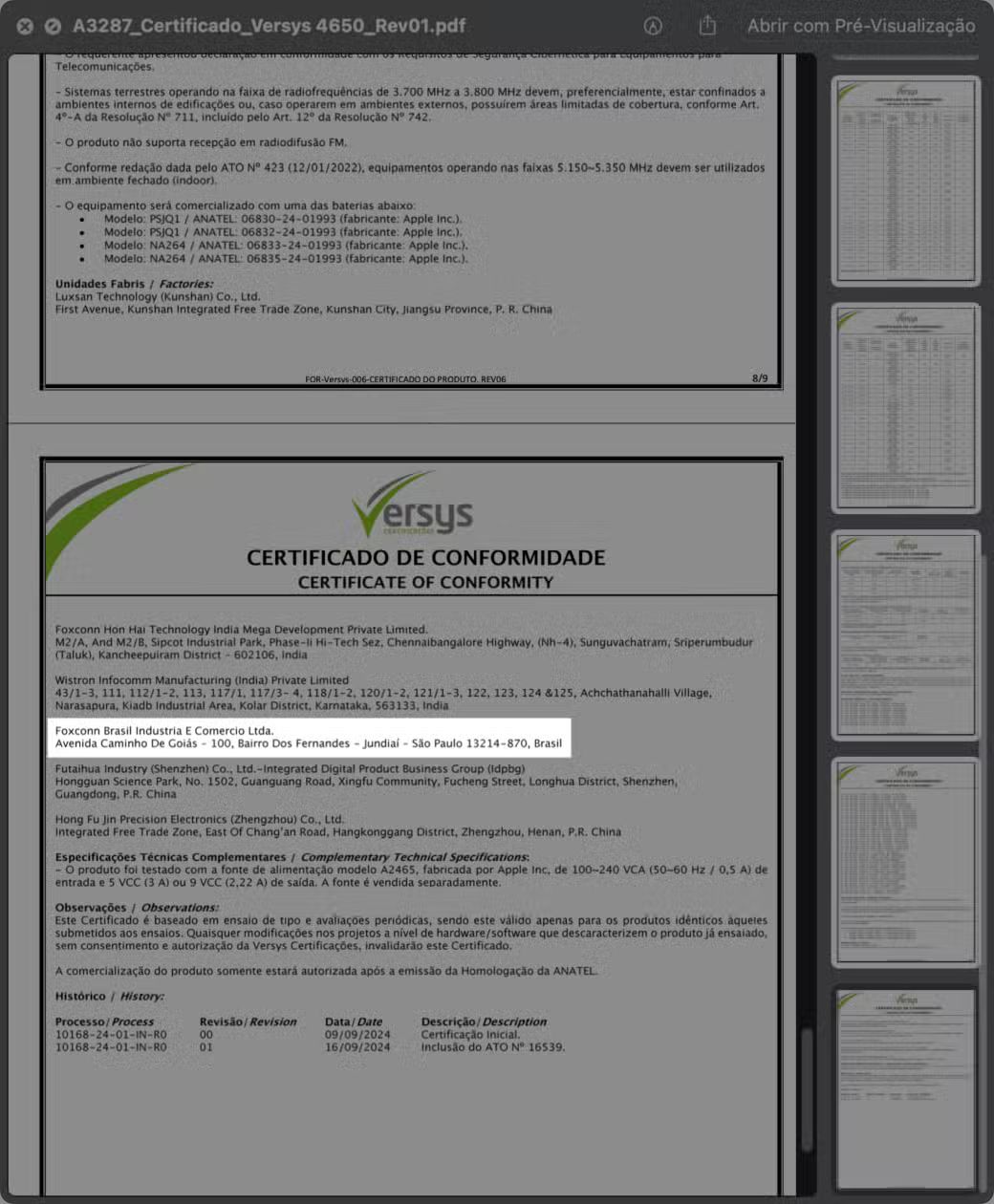 根据巴西的监管文件,这些 iPhone 16 是富士康位于圣保罗州朱迪亚伊市的工厂完成组装的。