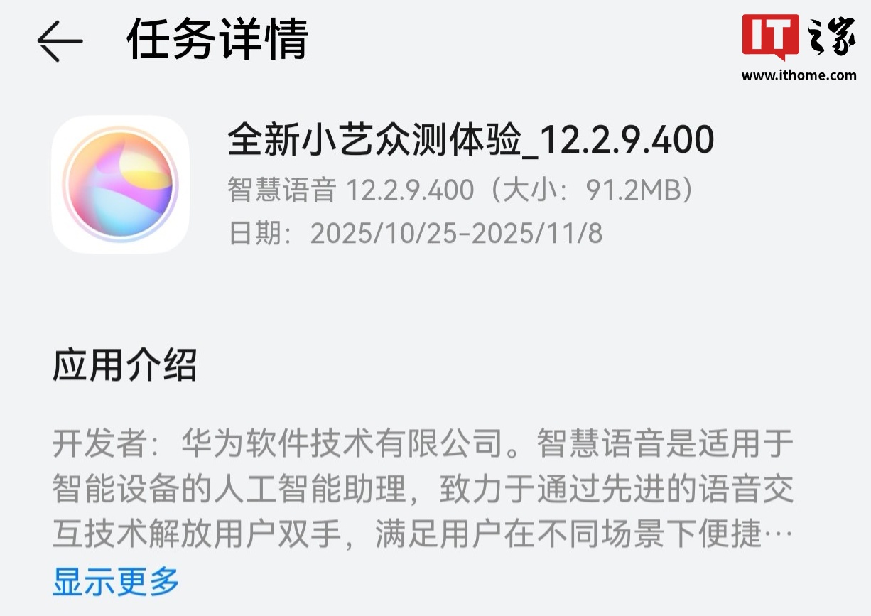 据IT之家此前报道,今年 8 月,全新小艺智能助手已开启了 12.2.6.402 版本众测升级。该版本的小艺提供“对话”和“发现”两大功能,并带来了和鸿蒙 HarmonyOS NEXT 5.0 / 5.1 系统版本相同的 UI 设计和功能模块,支持使用智能体和小艺技能等功能。