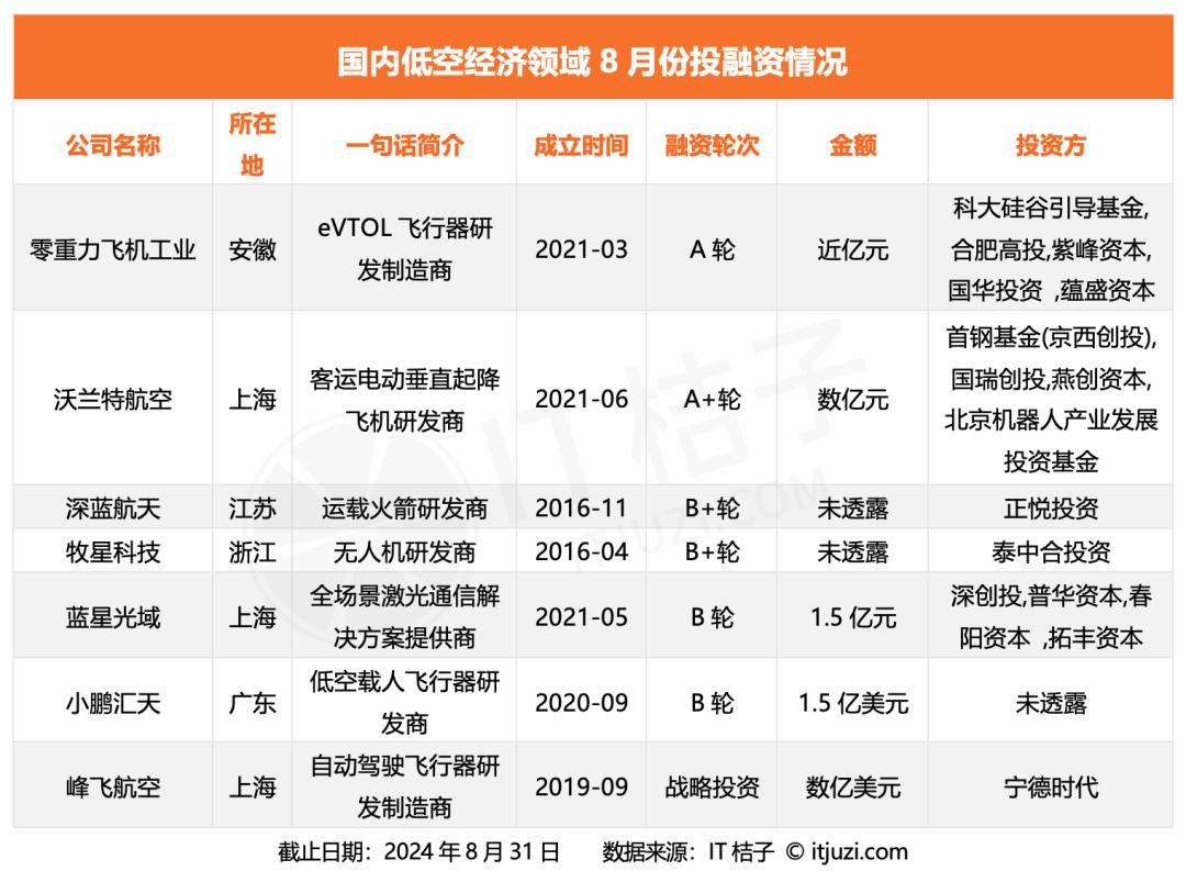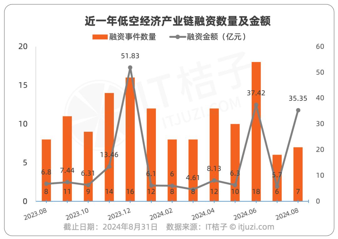 根据IT桔子数据,自2023年8月以来,低空经济产业链共发生了139起投资事件。