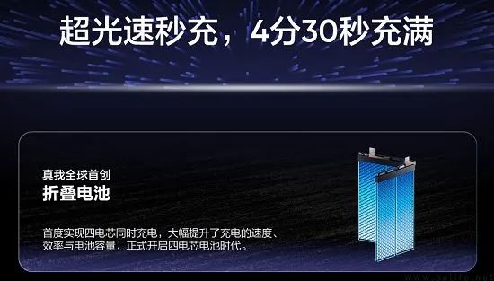 同时目前的多电芯并联方案也并不鲜见,例如realme方面更是有“卫星帆板”折叠电池的技术储备,其四块电芯中每个电芯的厚度仅2.9mm,这也是realme 320W超光速秒充的基础之一。