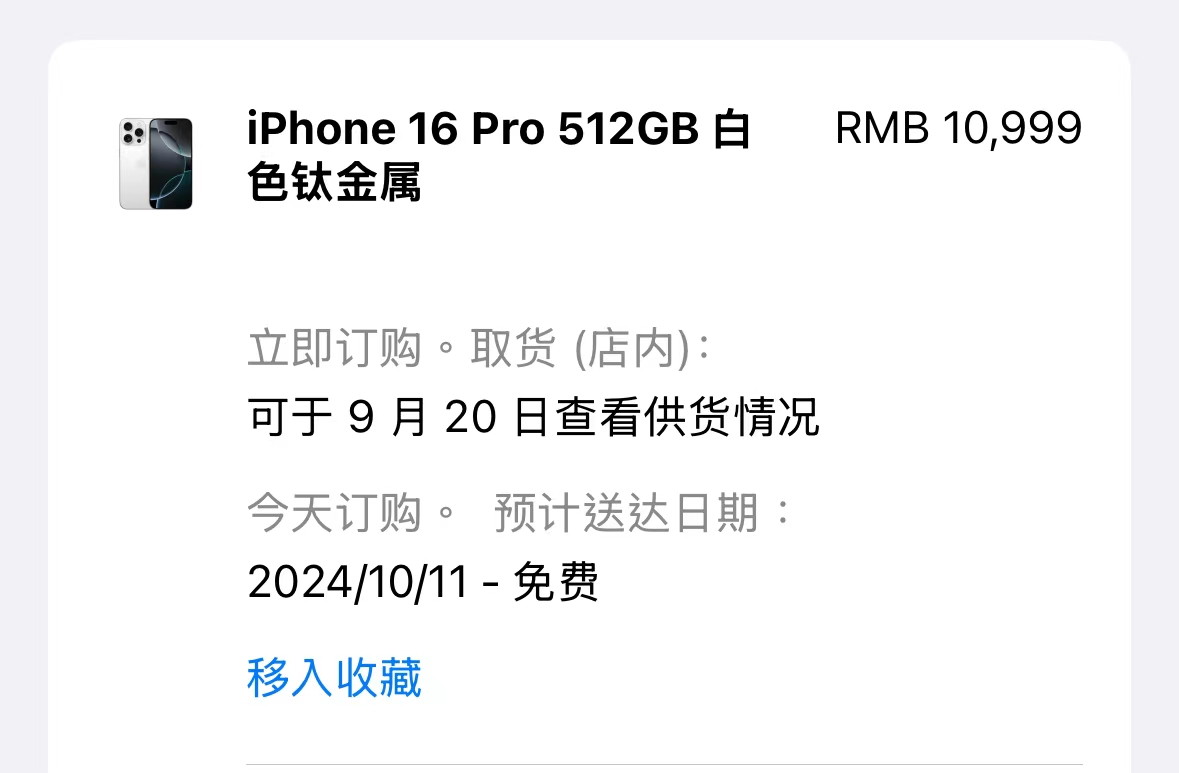 iOS 18正式版推出后,iPhone 16系列的预售明显出现了一些问题。比如,目前Apple Store上iPhone 16 Pro沙漠色钛金属显示10月11日到货,而iPhone 14、iPhone 15系列预售时,这个时间段预订基本已经要排队到11月了。