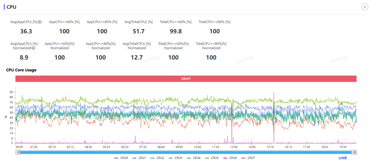 具体来看核心调度,游戏过程中基本是 6 枚最高主频 3.62GHz 的性能核心相对来说调度比较积极,2 枚超大核心其中一颗保持相对稳定的中低负载性能输出,另一颗根据游戏运行需求偶尔冲高然后快速回落,整体来说,7 个核心保持中低负载发力。