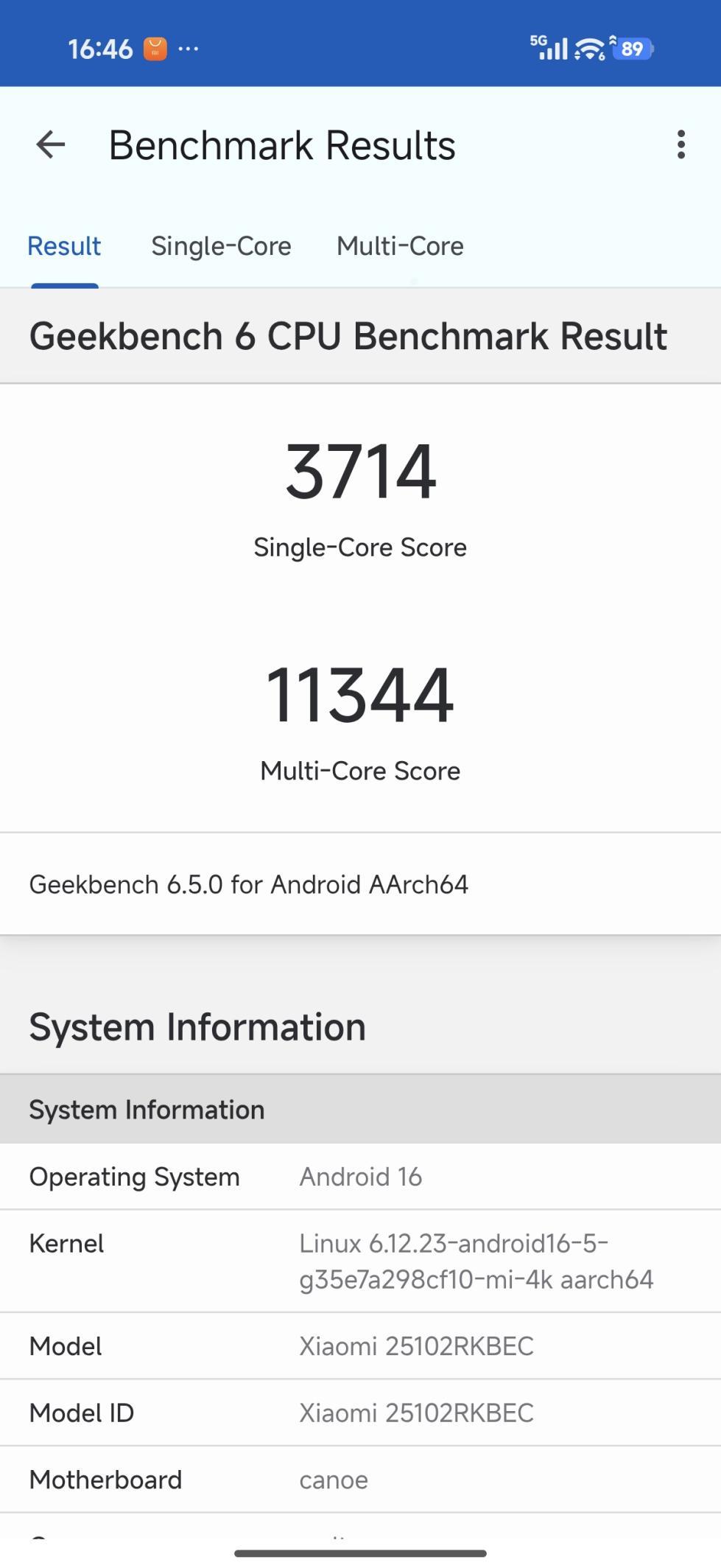再看 GeekBench 6 的 CPU 跑分,单核 3714 分,多核成绩达到 11344 分,同样是十分出色。