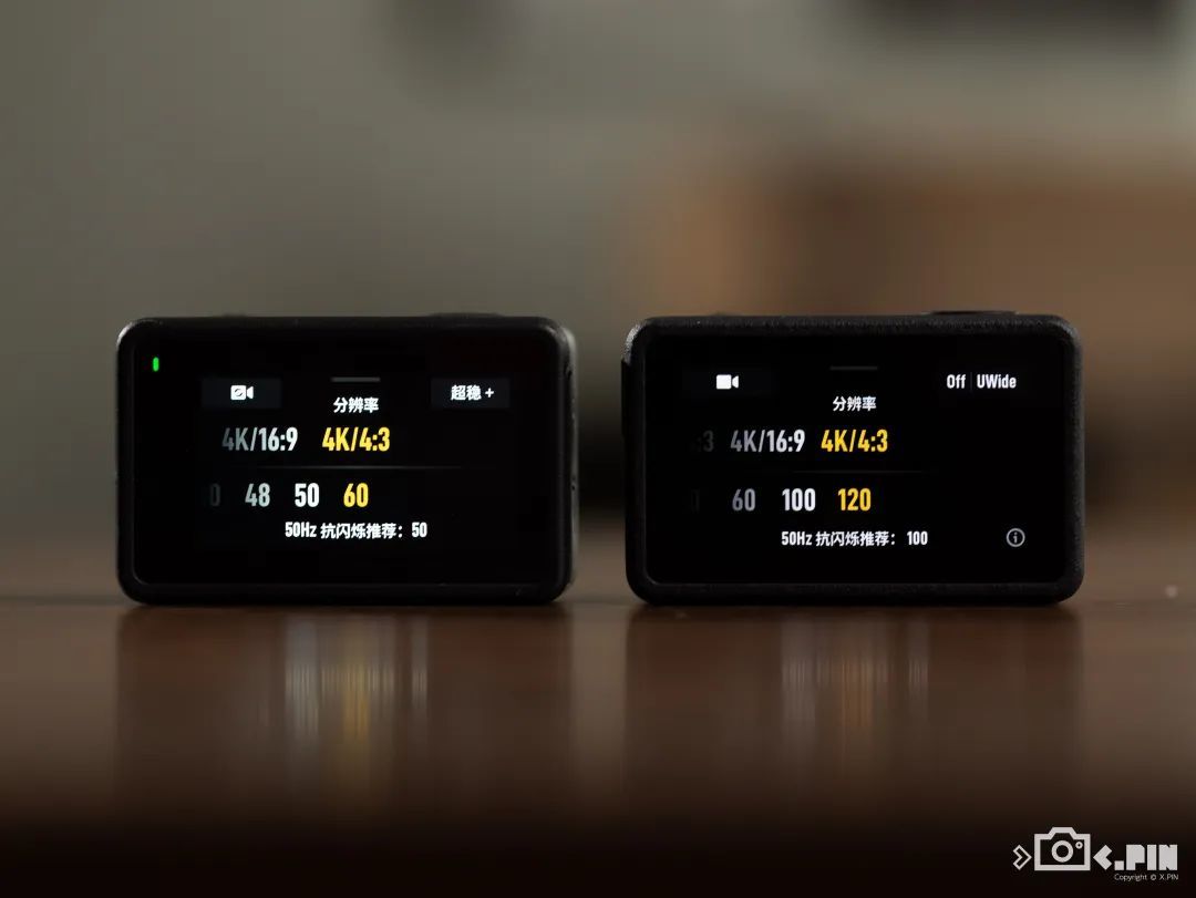最后,还有在格式上最大的一个变化,那就是 Action 5 Pro 支持录制 4 : 3 比例的 4K 120 帧视频,而上一代只支持录制 16 : 9 比例。
