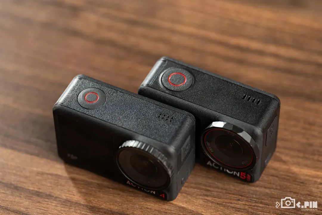 其实发现变化很简单,咱们拿出上一代 Action 4 来比一下就知道了,首先就是镜头外面这一圈装饰有所变化,质感看上去更好了。
