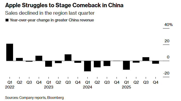 财报显示,截至9月的三个月内,苹果在中国市场的收入同比下降近4%,至145亿美元,远低于分析师平均预期的164亿美元。过去两年中,苹果在这一关键市场仅有一个季度实现增长。尽管如此,首席执行官库克在分析师电话会议上表达了对中国市场表现及新iPhone 17市场反响的信心。