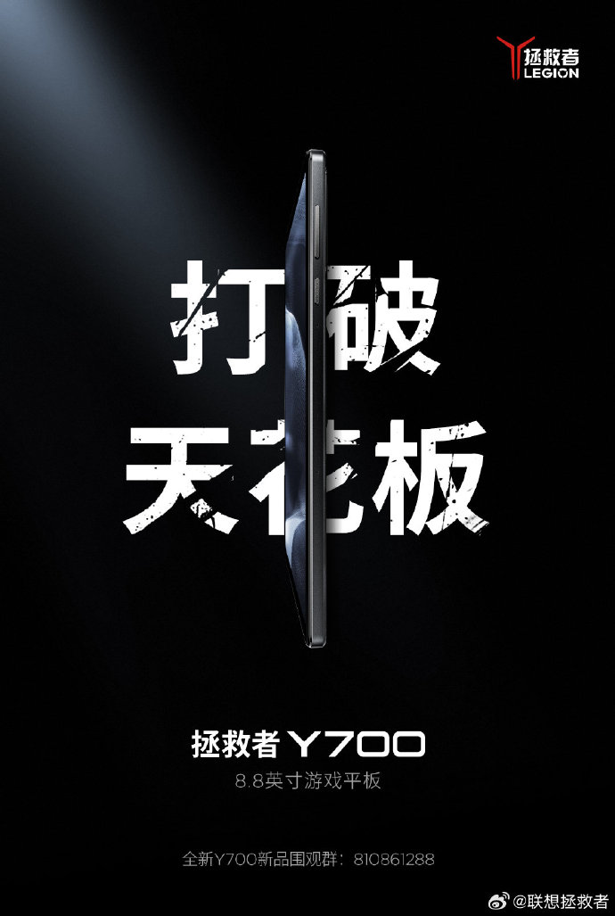 在此之前,新一代 Y700 游戏平板预热海报已经公布,展示了新平板的侧面外观:平板采用直边设计,有小倒角作过渡;侧边还集成音量键和电源键,并标明“8.8 英寸游戏平板”。
