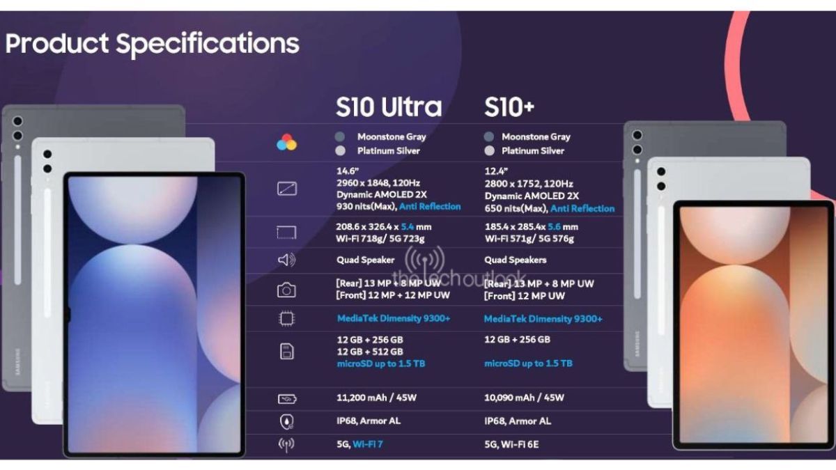 IT之家 9 月 20 日消息,科技媒体 The Tech Outlook 于 9 月 16 日发布博文,分享了三星 Galaxy Tab S10 Plus 和 Galaxy Tab S10 Ultra 两款平板的规格信息。