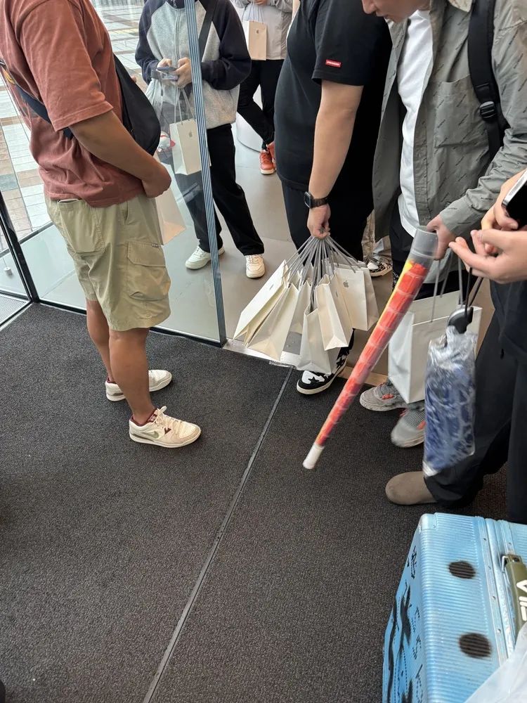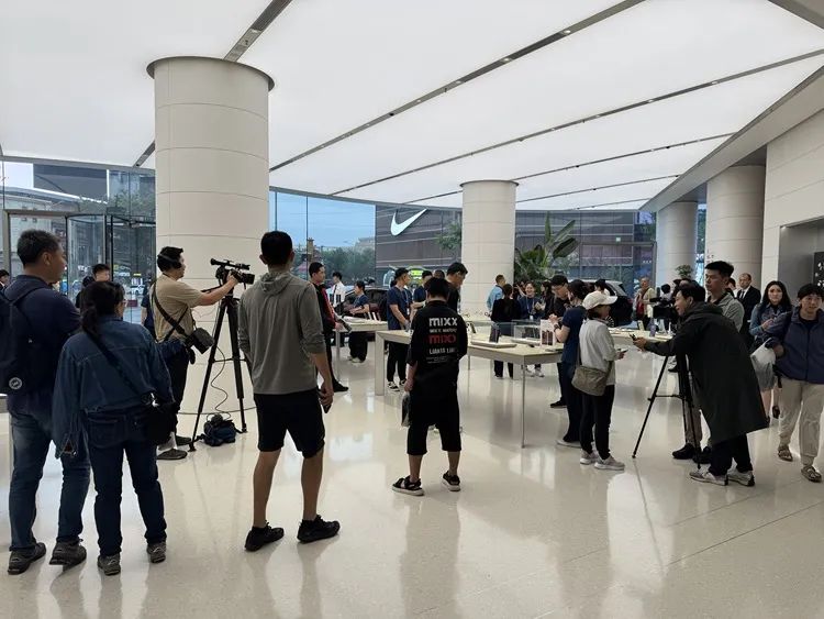 经过我们观察,排队取货和来店里体验新 iPhone 的用户各占一半,用户的关心重点几乎全部都扑在 iPhone 16 系列和 AirPods 4 降噪版上,选择购买 Apple Watch S10 和新款 AirPods Max 的用户几乎没有。