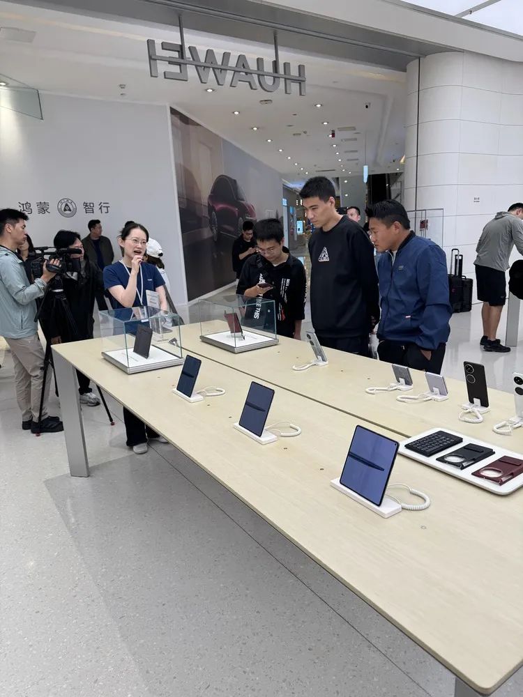 “早晨有一些用户在门口排队,但是因为今天没有现货所以已经劝大家回去了。店里没有现货,但有实体样机,可以在官网线上预约一对一体验,每次体验30分钟。”华为的工作人员对我们表示。