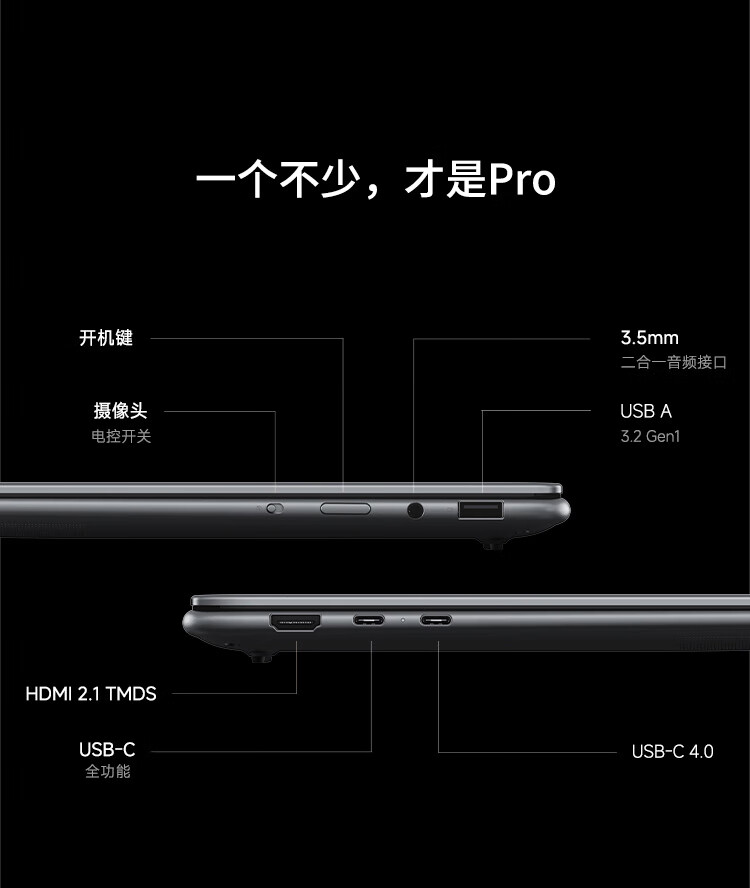 其他方面,该机内置 73Whr 大电池,可提供约 19 小时视频播放续航、约 9 小时办公续航,厚 16.6mm,重约 1.6kg,提供 HDMI 2.1、USB-C 4、全功能 USB-C、USB-A 3.2 Gen1 接口。