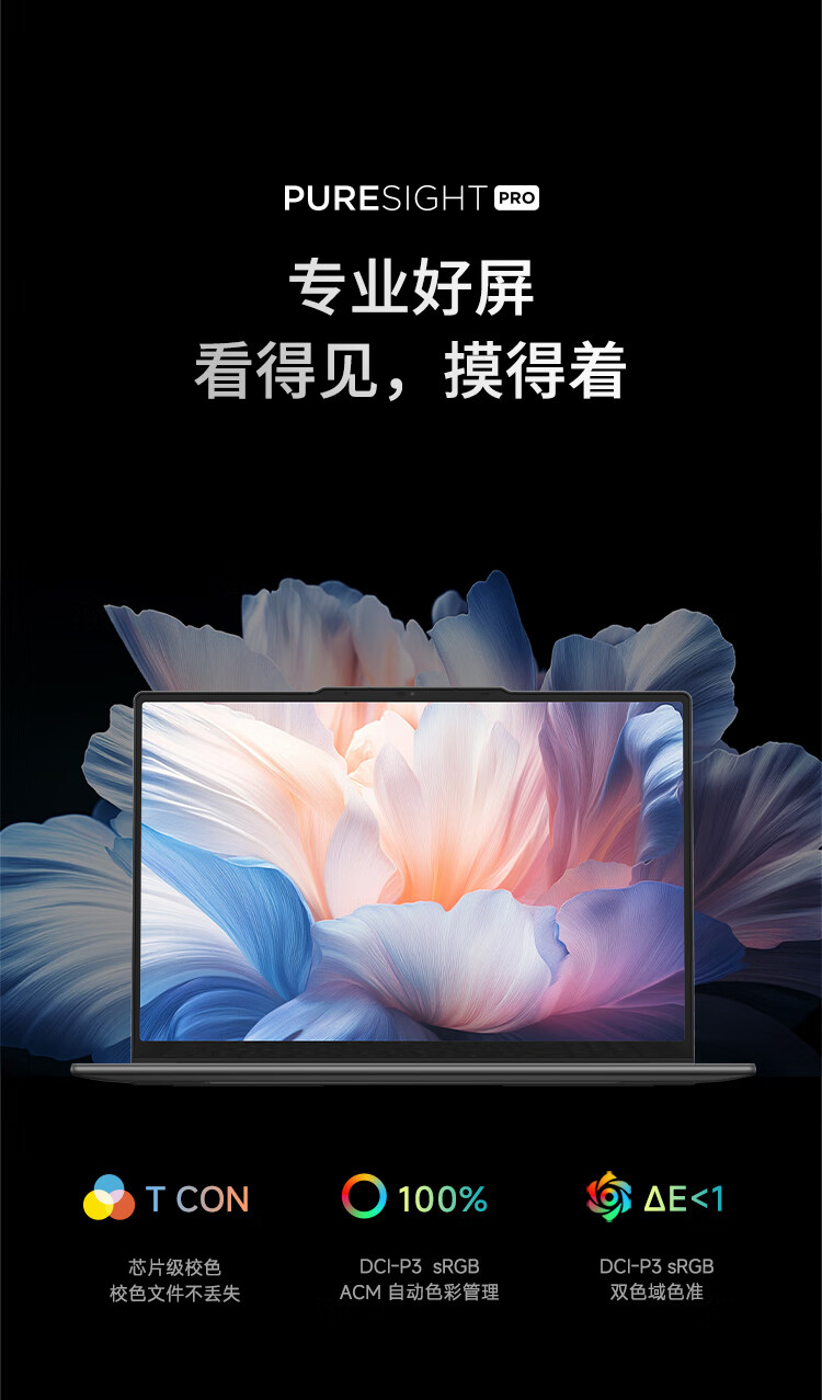 此外,这款机型还采用了一块专业级屏幕,拥有 3K 分辨率 120Hz 刷新率,支持 TCON 芯片级校色,可提供 100% DCI-P3&sRGB 色域,平均 ΔE<1,支持 DC 调光、杜比视界、10 点触控,双莱茵认证。