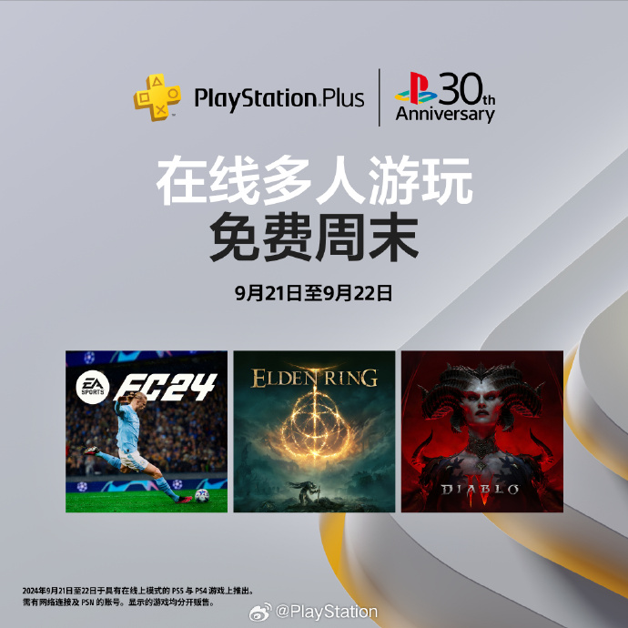 据官方介绍,“在线多人游玩免费周末”活动即在 PS5 和 PS4 主机上享受用户拥有的游戏的在线多人模式,无需 PlayStation Plus 会籍。从官方公布的海报来看,参与该活动的游戏包含《EA SPORTS FC 24》《艾尔登法环》《暗黑破坏神 4》三款。