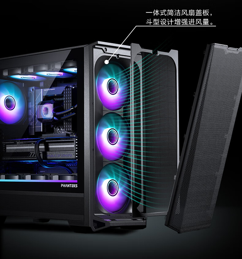 G400A 机箱的最大特色是其前部配备的斗型设计聚风风扇盖板,这一结构可提升进风量,增强整机散热效果。