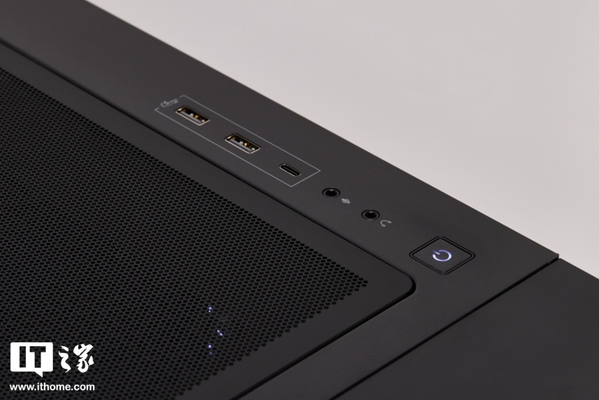 纯黑配色的机身,亮面处理的亚克力前面板搭配侧透钢化玻璃,一体性非常强,同时也更能烘托机箱内部灯光的氛围感。