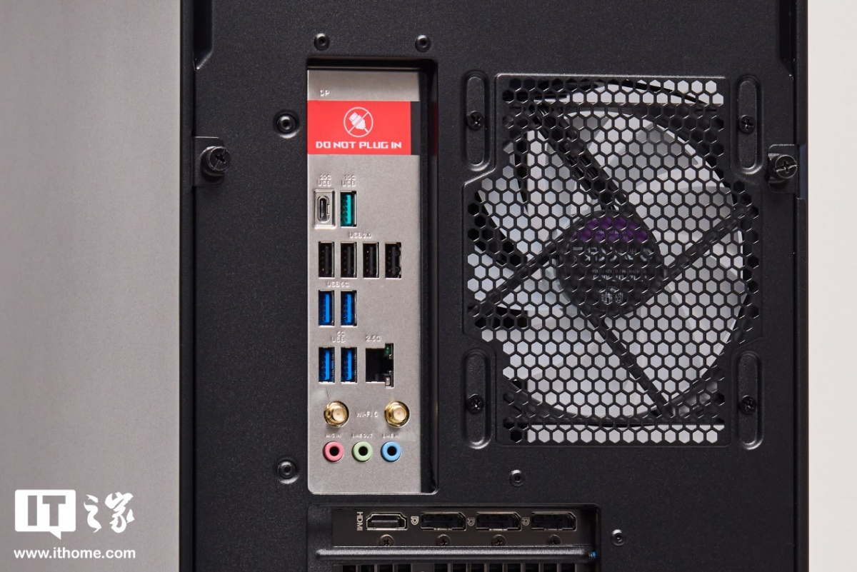 机箱背部的设计比较规整,I/O 接口面板的配置主打一个够用,包含: